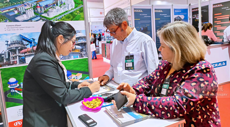 展會期間,宏基機械接到了眾多來自智利及其他南美國家客戶咨詢,主要咨詢我公司生產(chǎn)的選礦設(shè)備,圓錐破碎機,移動式破碎機等。對于客戶提出的一些問題,我公司業(yè)務(wù)人員都一一耐心解答,并受到了客戶的廣泛好評。通過本次展會,宏基機械與幾十家客戶建立了聯(lián)系。宏基機械感謝主辦方建立這么好一個平臺,也歡迎廣大客戶來中國參觀訪問。